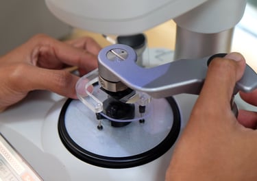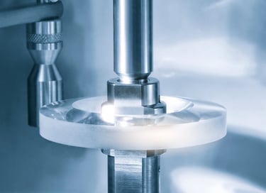 Nesse processo, blocos oftálmicos são transformados em lentes. Em altas dioptrias, otimizamos a menor espessura, com acabamento de excelência conforme aro e medidas, garantindo conforto e estética.